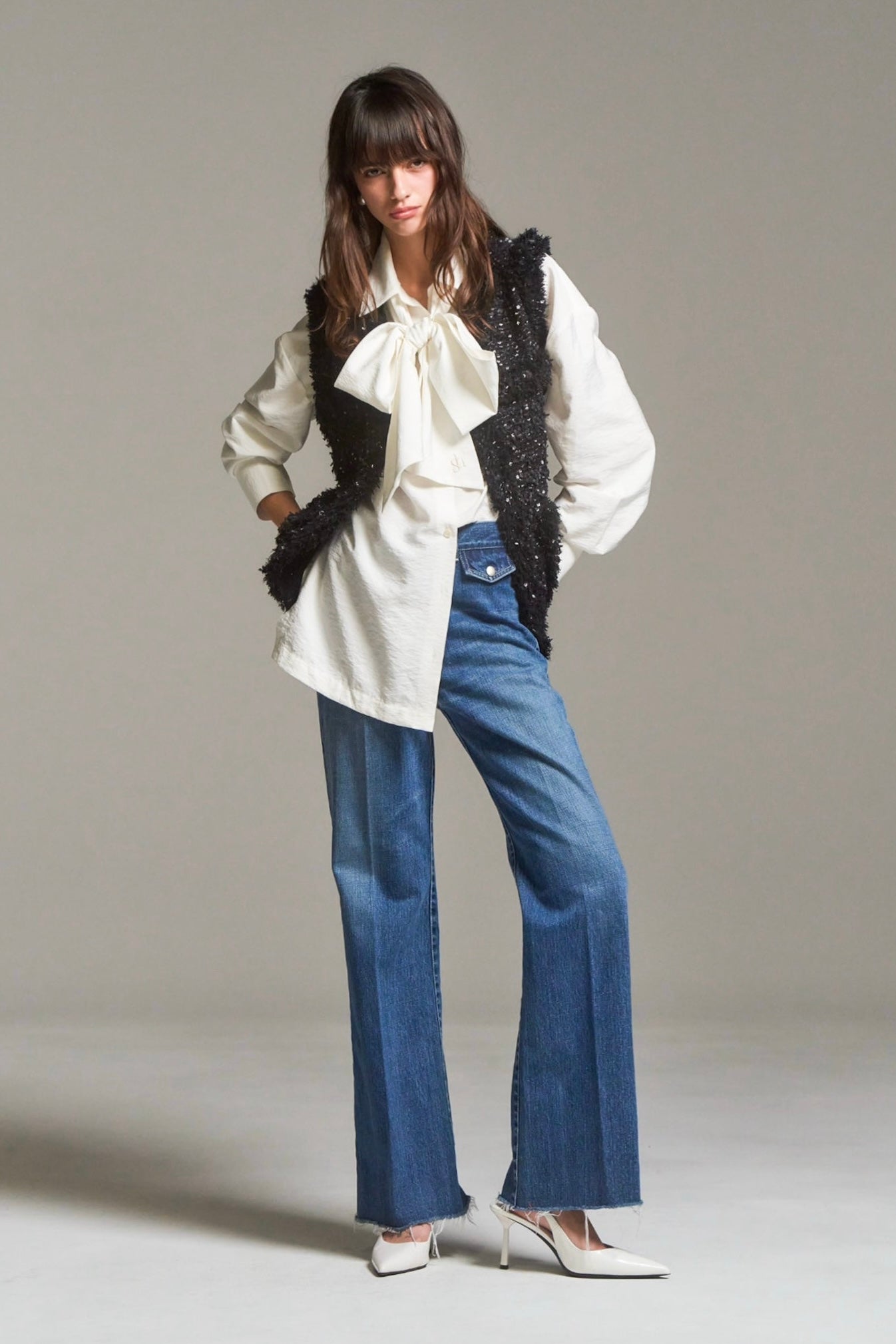 flower spangle tweed gilet