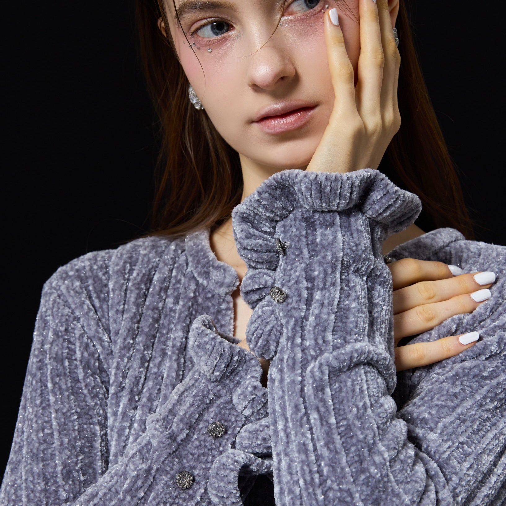 【即納】Speckled side ribbon knit