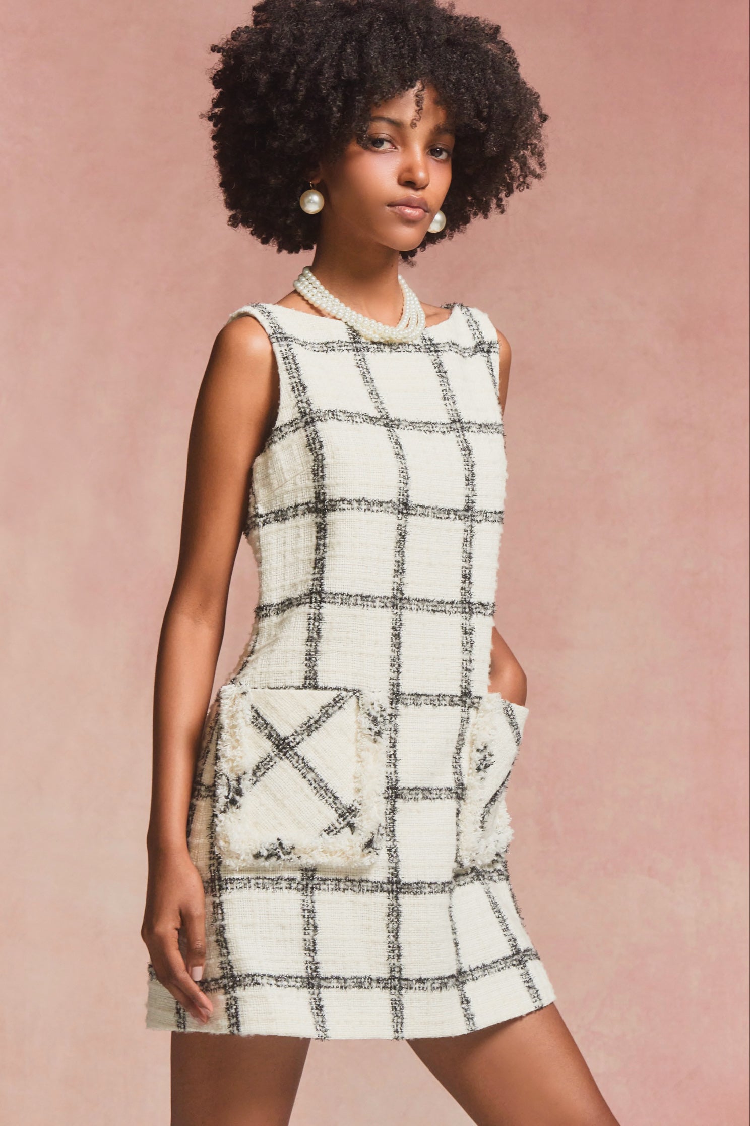 Window Check Tweed Mini Dress