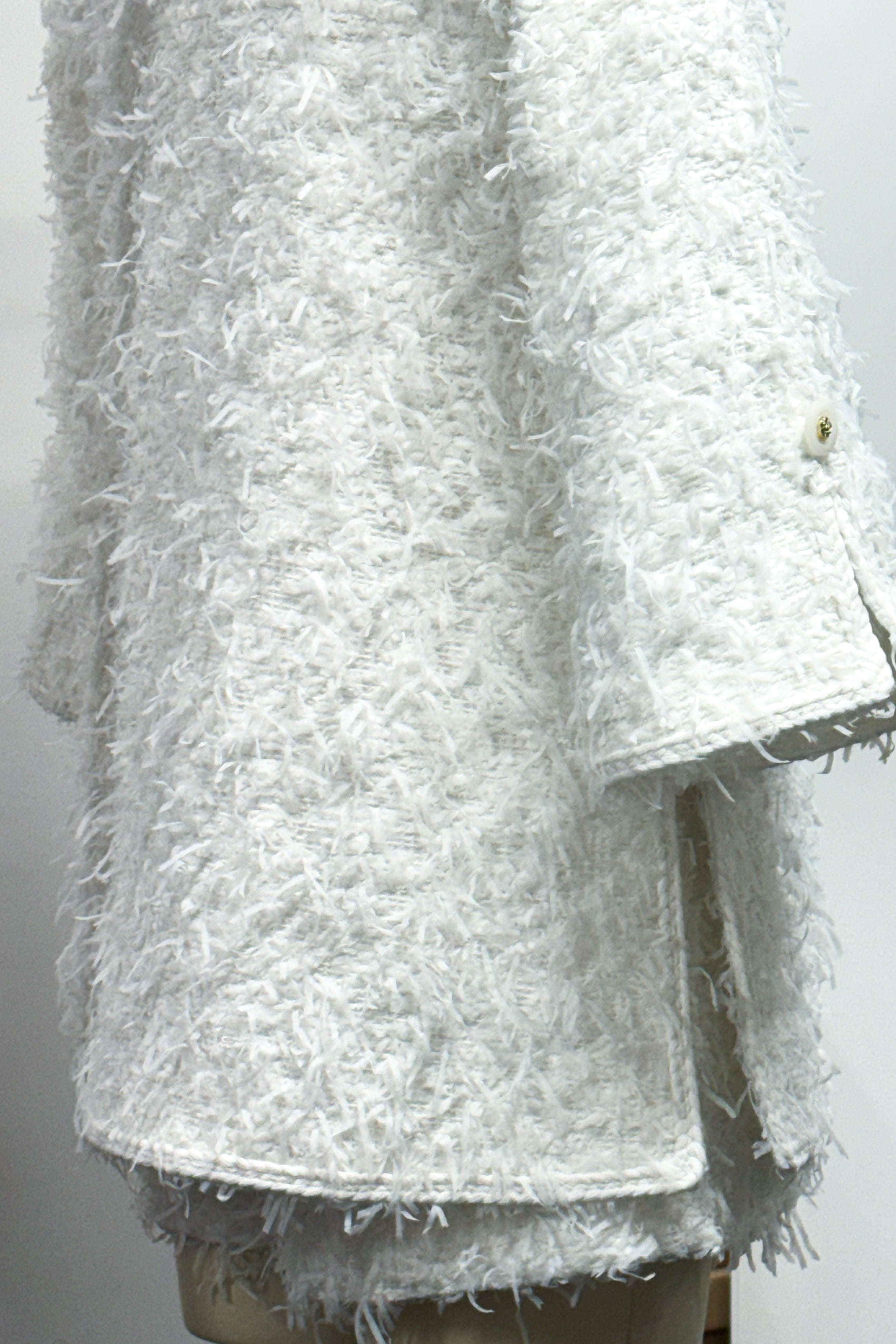 ・深めに設計したサイドスリット。歩くたびに動きが生まれ、ボトムとのレイヤードを美しく引き立てます。