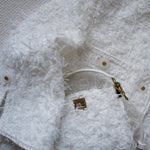 ※本製品は、柔らかくデリケートな風合いを出すため糸及び素材の特性上、引っ掛かりにより糸が飛び出したり、引きつれをお越しやすくなっております。美しい外観を保つため、着用時にベルト、バッグ、アクセサリー等の身の周りのものとの摩擦や、引っ掛かりには充分ご注意ください。