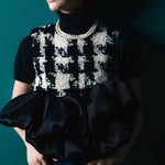 ※本製品は、柔らかくデリケートな風合いを出すため糸及び素材の特性上、引っ掛かりにより糸が飛び出したり、引きつれをお越しやすくなっております。美しい外観を保つため、着用時にベルト、バッグ、アクセサリー等の身の周りのものとの摩擦や、引っ掛かりには充分ご注意ください。